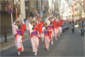 千代田区では、毎年3月下旬〜4月初旬にかけて、区内各地でさくらまつりが開催されます。期間中百万人を越える人出で賑わっています。 この期間中、2日間にわたって靖国神社特設舞台で「さくらフェスティバル」が開かれます。 北の御門連は毎年、阿波踊りとかっぽれで出演します。